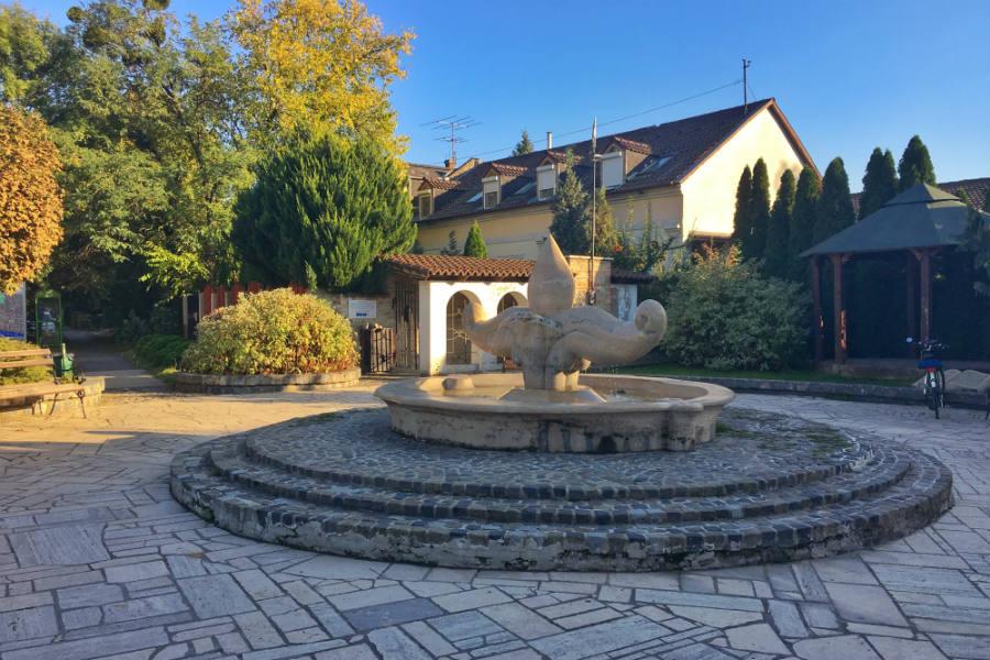 Emellett a téren további információkhoz is juthatunk a településről, valamint a Duna felőli sarkában megcsodálható a nem oly rég, 2016-ban átadott gyönyörű Ybl Miklós szobrot. Az alkotás emléket állít a nagy eklektikus építésznek, aki nélkül a verőcei Duna part nem lehetne az az országszerte méltán híres hely, ami. Mind a szökőkút, mind pedig a szobor Tóth Dávid szobrászművész alkotása.